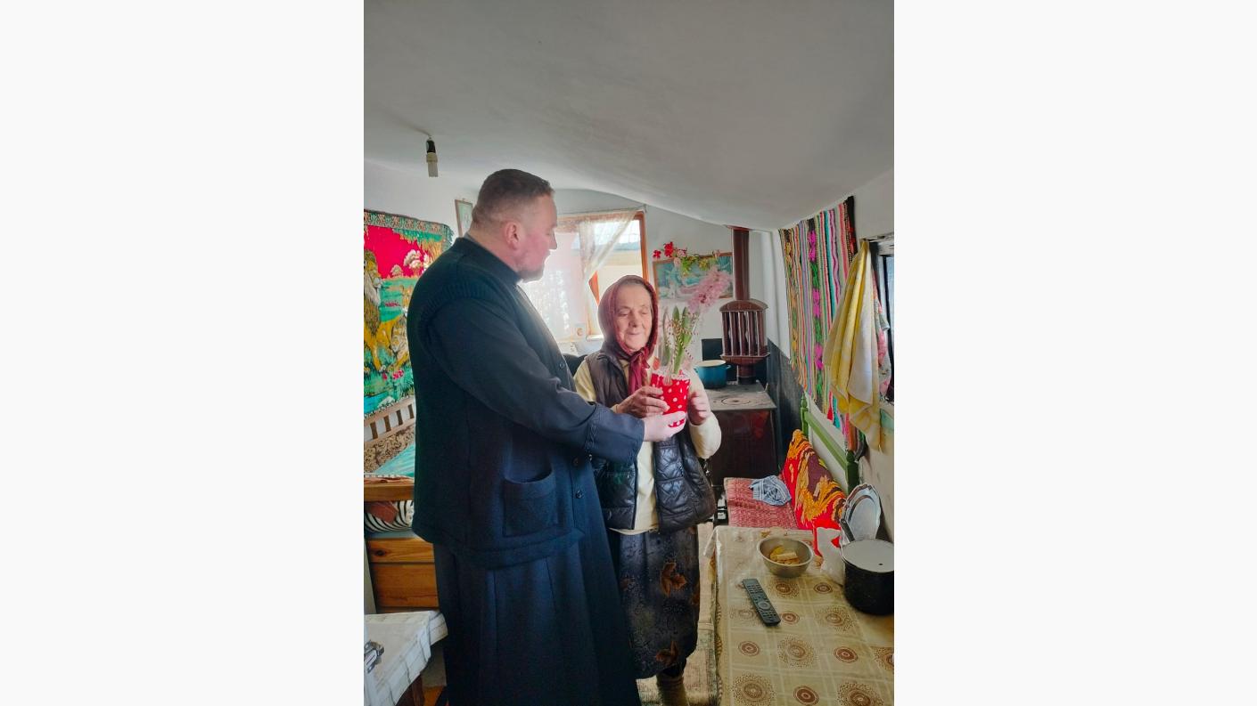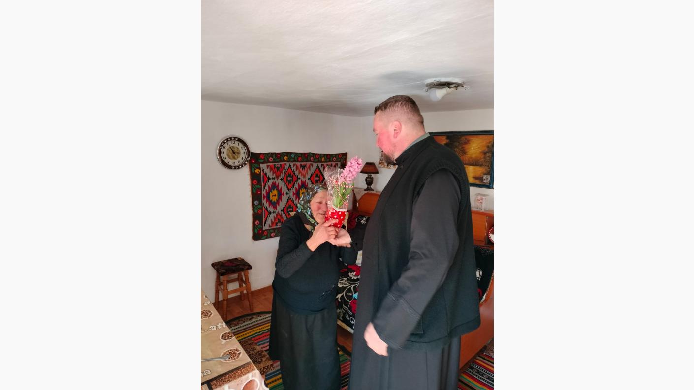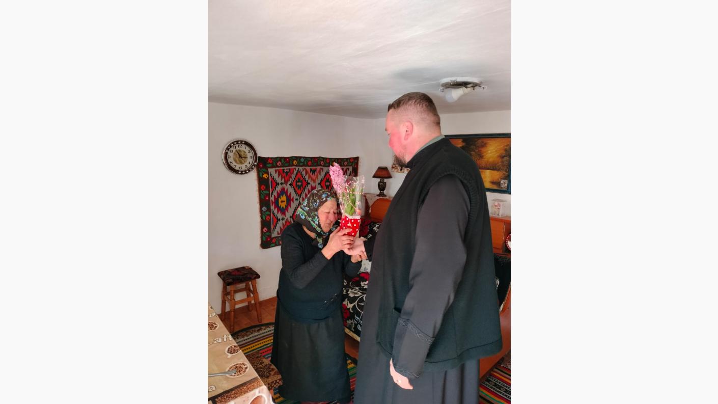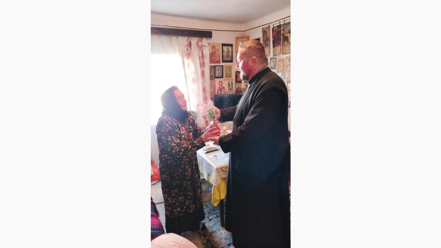 În cea de a doua parte a zilei, preotul a mers la domiciliul doamnelor vârstnice ale parohiei care nu se pot deplasa, cercetându-le și oferindu-le în dar o floare, ca simbol al primăverii, al speranței și al renașterii.