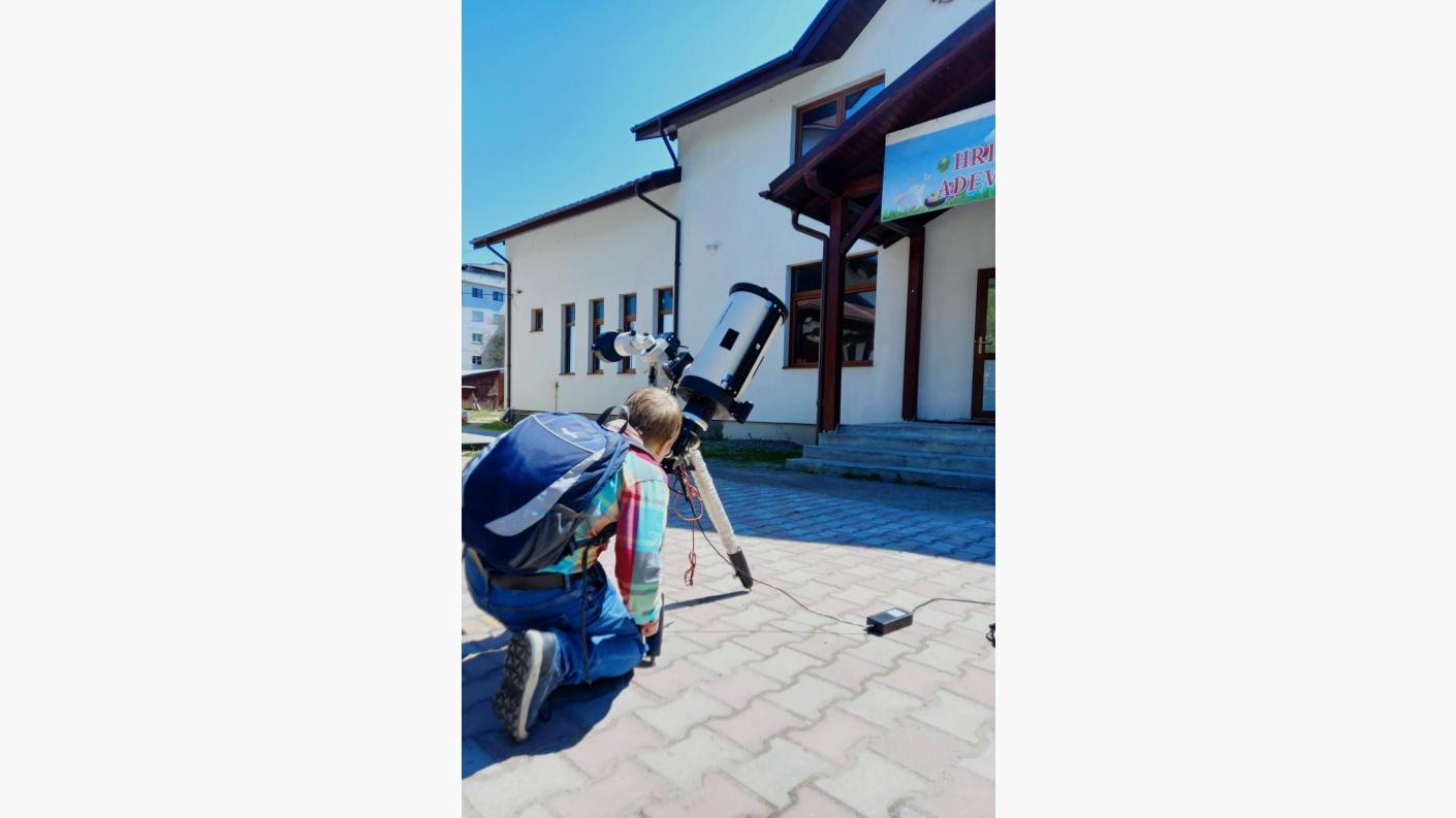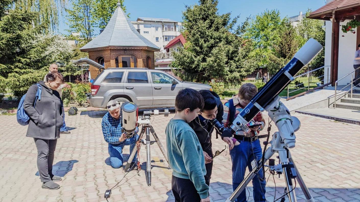 Micii astronomi amatori au făcut cunoștință cu instrumentele optice folosite în astronomie, au făcut observaţii prin telescop cu filtru solar, au primit explicaţii cu privire la modul de formare a acestora precum şi faza planetei Venus, ca o Lună mică, puțin trecută de primul pătrar.