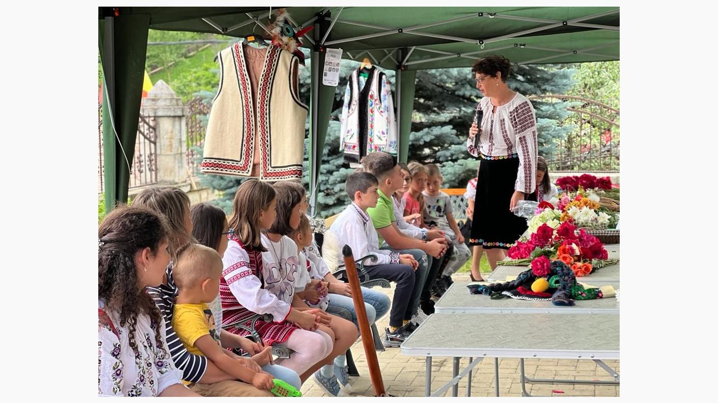 Invitata acestei activități, doamna Diana Albu, meșter popular, din comuna Asău, le-a prezentat celor prezenți acest simbol vestimentar, dar și multe alte obiecte tradiționale: opinci din piele, veste, catrință, brâu, dar și cunoscutele sale măști. Copiii au aflat lucruri interesante despre tradiții, au pipăit și mirosit materialele naturale folosite în trecut pentru confecționarea obiectelor vestimentare, au probat măști și au pus întrebări invitatei.
