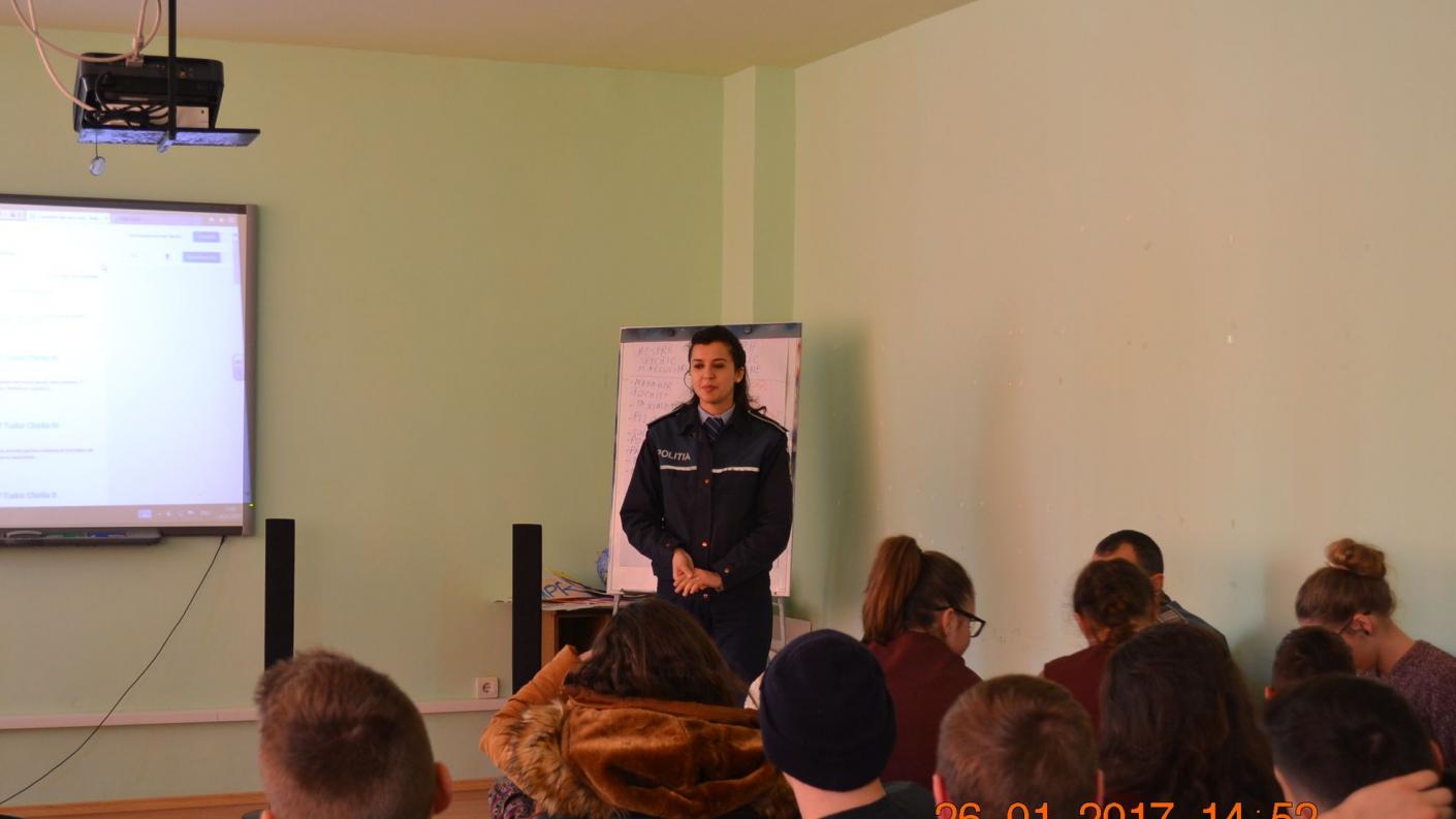 În parte a doua a proiectului, din partea Poliției Stațiunii Tg. Ocna a vorbit domnisoara subinspector Bălan Mădălina care a explicat riscurile la care se expun tinerii care nu mai dialoghează cu părinții și care sunt consecințele legale ale actelor de violență săvârșite de elevii de liceu.