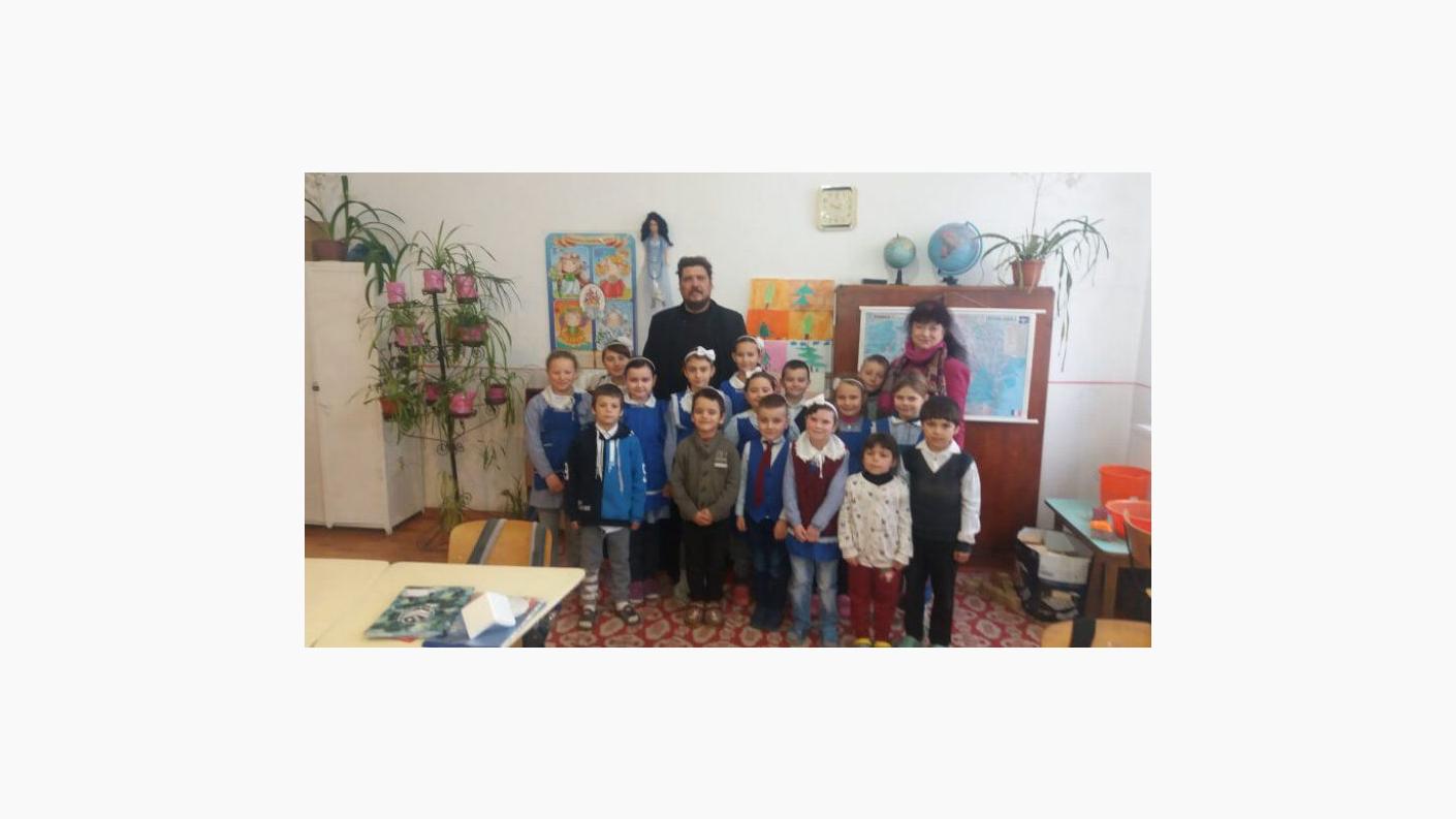 Părintele Alexandru a mulțumit pentru găzduire și bună colaborare doamnei profesor-învățător primar, Dascăl Silvia, și doamnei educatoare Ciobanu Violeta, precum și elevilor și a împărțit iconițe tuturor copiilor prezenţi. (Pr. C. A.)