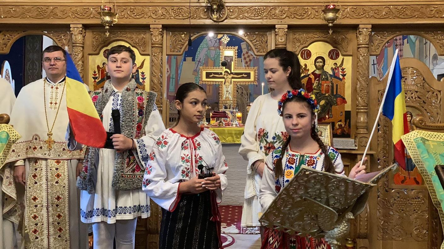 Programul artistic a fost deschis de către Maria-Teona Gliga, elevă a Şcolii „Muşatinii” din Roman şi a Şcolii Populare de Artă „Carmen Saeculare” Piatra Neamţ (clasa canto popular coordonată de prof. Georgiana Şerban Axinte), care a interpretat împreună cu doamna preoteasă Simina Gliga câteva cântece patriotice.