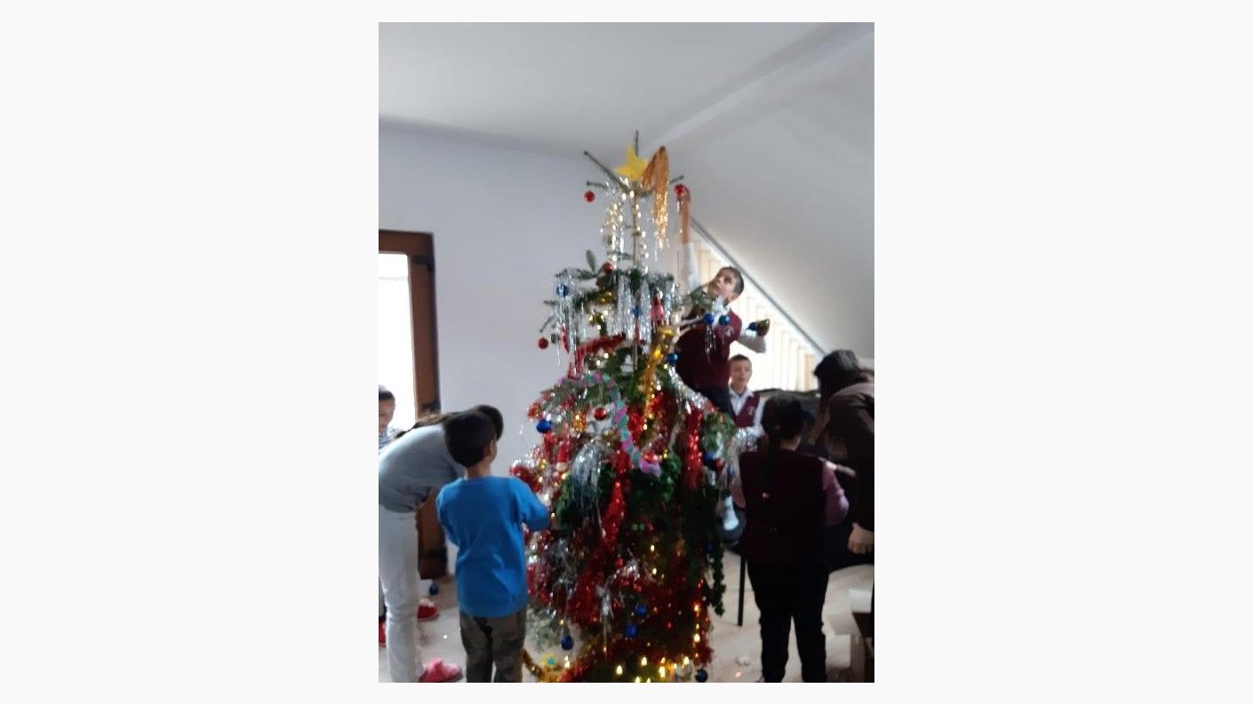 Nu am știut cum să ne exprimăm solidaritatea și să le arătăm cât ne pasă, așa că am luat un brad și ornamente; am scos din mânecă câteva activități cu care să facă ornamente și ghirlande festive cu mânuțele lor… apoi, prin implicarea minunată a câtorva tineri voluntari de la Colegiul Tehnic ”Gheorghe Asachi” din Onești, însoțiți de d-na dirigintă, prof. dr. Oana Zaharia, voluntari care și-au dorit de ceva timp să ne cunoască trupa de persoane speciale și au apărut și cu o chitară… s-a materializat o zi specială cu zâmbete, colinde, voie bună și … dulciuri!